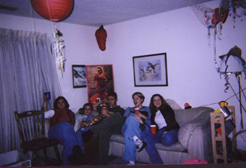 Here's a picture of my friends on a New Year's Eve party my friend Mary and I threw, she has the funky hair.